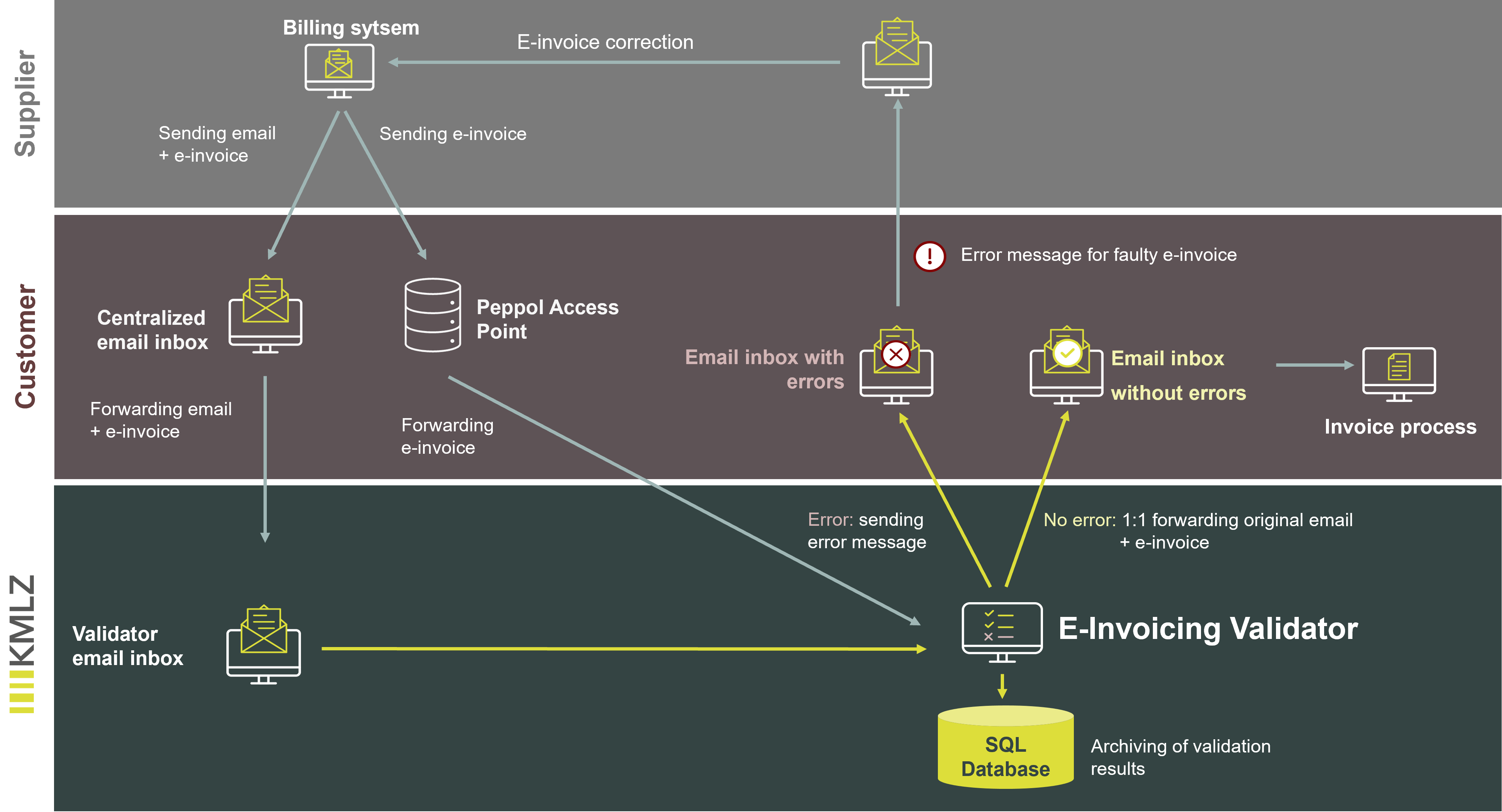With the KMLZ E-Invoicing Validator, we provide a solution to the new legal requirements and the practical challenges companies face. Our tool is specifically designed to validate e-invoices automatically and reliably — without extensive implementation effort.