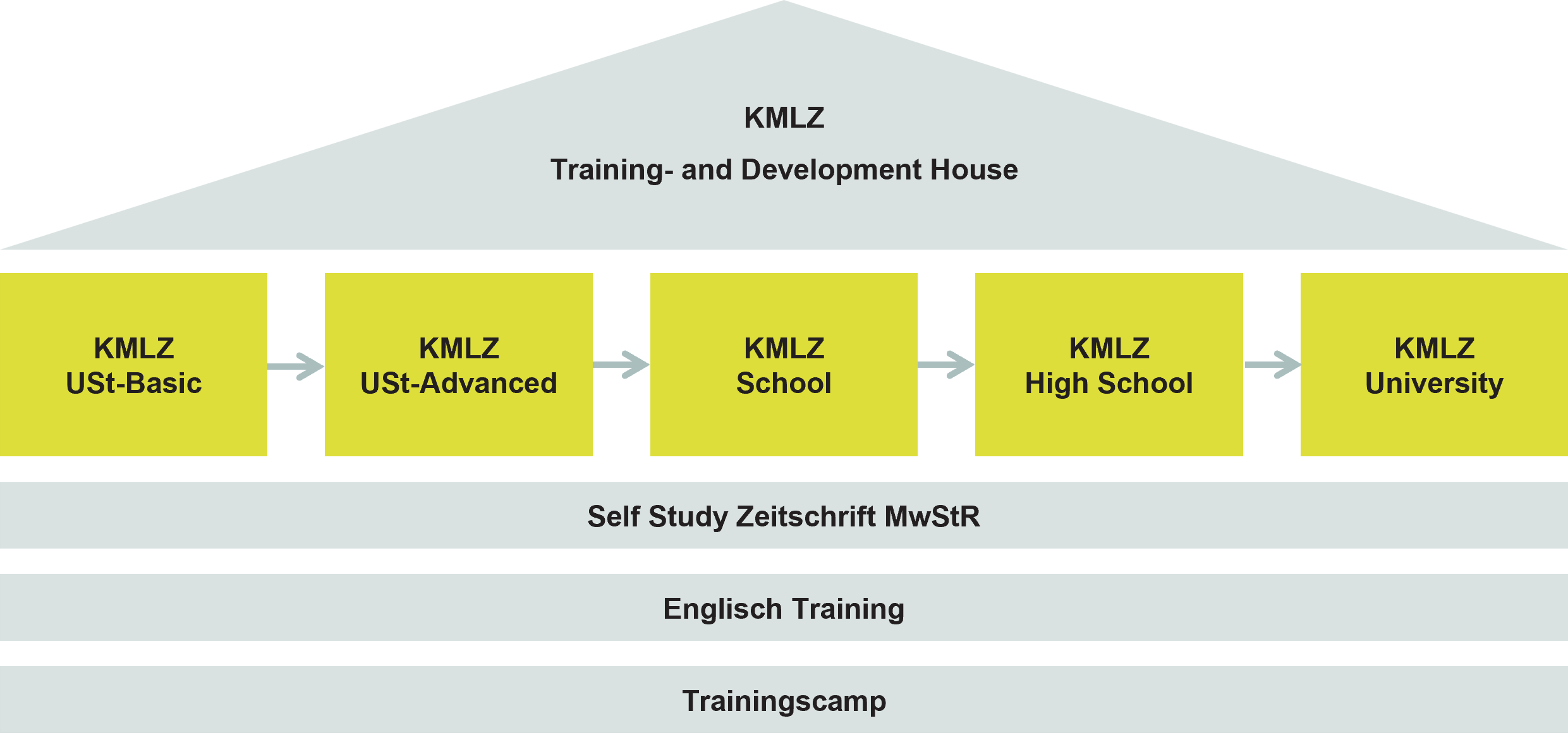 Even before you officially start, you can build your foundation through our VAT Basics and Advanced courses. Once on board, you’ll join either the KMLZ School, High School, or University depending on your role – each offering intensive training focused on your level.