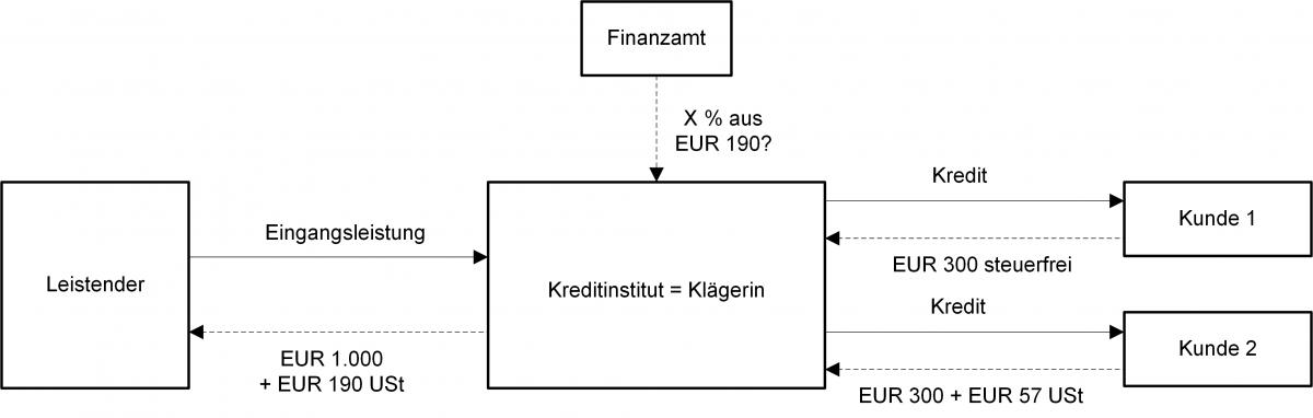 Die Klägerin, ein Kreditinstitut, bezog Eingangsleistungen, welche sie für steuerpflichtige und steuerfreie Kreditvergaben verwendete. Sie errechnete die notwendige Vorsteuerquote mithilfe der sog. Philipowski-Methode. Dabei wird der Umsatzschlüssel mit einer Personalbedarfsrechnung kombiniert. Im Ergebnis kam die Klägerin dadurch zu einer höheren Vorsteuerquote, als das Finanzamt sie gewähren wollte. Das Finanzamt wendete einen Umsatzschlüssel unter Berücksichtigung der Eigenanlagen der Klägerin an. Außerdem wollte das Finanzamt für eine bestimmte Gruppe von Eingangsleistungen (IT-Dienstleistungen) einen eigenen Vorsteuerschlüssel anwenden.