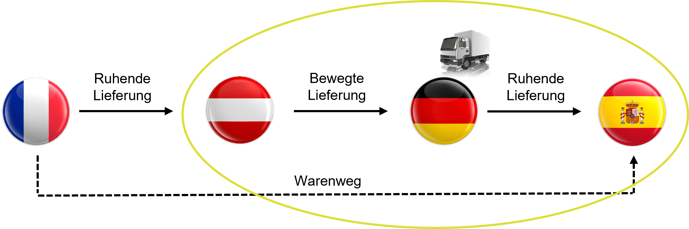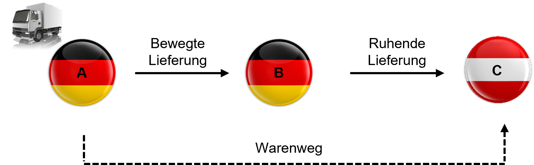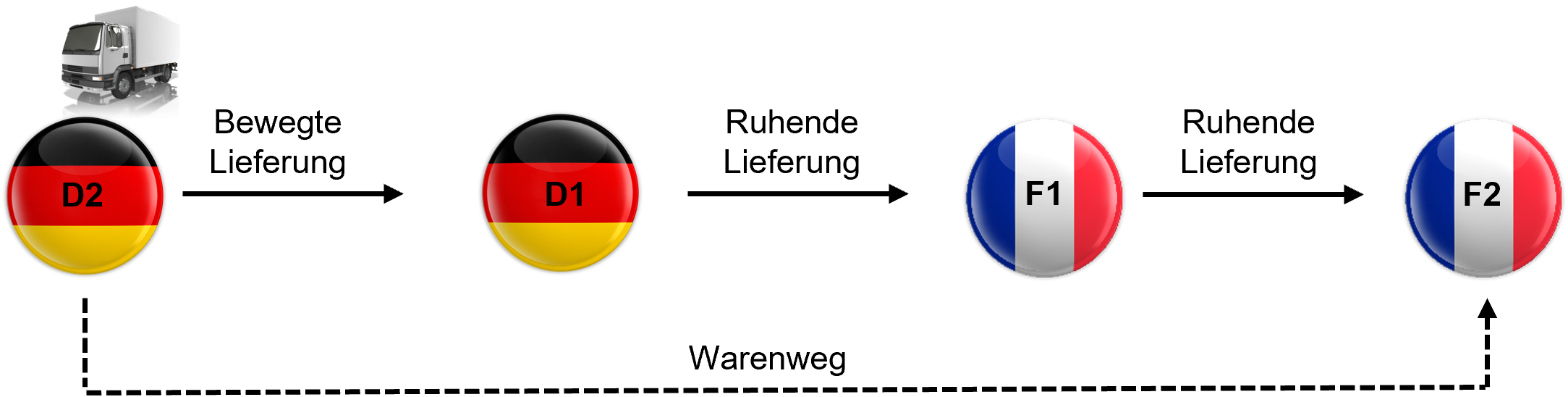 Bei allen anderen Lieferungen in der Reihe findet keine Warenbewegung statt. Man nennt diese daher auch „ruhende Lieferungen“. Sie werden entweder vor oder nach der bewegten Lieferung ausgeführt.