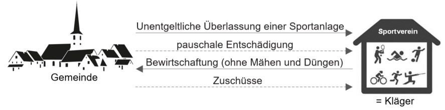 Dem Streitfall lag ein typischer Sachverhalt zugrunde, wie er bei sehr vielen Sportvereinen in Deutschland anzutreffen ist. Der klagende Sportverein durfte die Sportanlage im Eigentum der Gemeinde kostenlos nutzen. In einem Nutzungsvertrag verpflichtete sich der Verein im Gegenzug, die gesamte Sportanlage zu bewirtschaften (u.a. Reinigung des Sportheims, Pflege der Grünanlagen). Die Gemeinde sicherte dem Verein dafür in dem Nutzungsvertrag verschiedene pauschale Betriebskostenzuschüsse zu (z.B. 4.500 EUR für die Übernahme der Bewirtschaftung). Ein Nutzungs- oder Bestimmungsrecht behielt die Gemeinde sich hingegen nicht vor (Verbot von Schulsport o.Ä.).