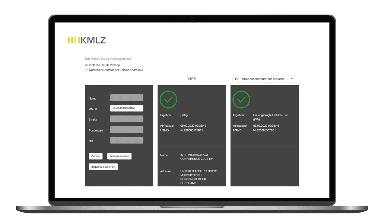 With the VAT-ID Check module, it is possible to check all VAT IDs stored in the system in real time, either regularly or on an ad hoc basis, via VIES or FinanzOnline. The query results are saved and are available for each individual transaction.