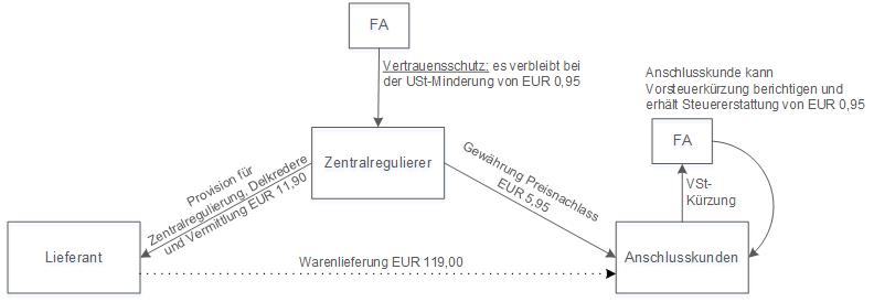 Die Erkenntnisse des BFH sind auch für andere Branchen von Bedeutung: Im Bereich der Zentralregulierung können Vermittler (Zentralregulierer) aufgrund geänderter Rechtsprechung ihre Umsatzsteuer nicht mehr mindern, wenn sie den von ihnen zentralregulierten Mitgliedern (sog. Anschlusshäusern) Preisnachlässe gewähren, die zulasten ihrer Provision gehen (KMLZ Newsletter 07|2015). Im Gegenzug müssen die Anschlusshäuser ihren Vorsteuerabzug aufgrund der weitergegebenen Vergünstigungen nicht mehr kürzen. Das BMF gewährte im Schreiben vom 27.02.2015 Vertrauensschutz für die Zentralregulierer. Folglich wurde es bis zum 27.03.2015 nicht beanstandet, wenn die Zentralregulierer von einer Entgeltminderung ausgingen. Damit kommt es zu einer mit den Bauträgerfällen vergleichbaren Situation: Die Anschlusshäuser können ihre Vorsteuerkürzung rückgängig machen und Erstattungen beantragen. Bei den Zentralregulierern hingegen verbleibt es aufgrund des Vertrauensschutzes bei der Entgeltminderung. Mitunter machen Finanzämter den Vertrauensschutz von weiteren Bedingungen abhängig, wie der eindeutig dokumentierten Behandlung als Entgeltminderung.Das vorliegende BFH-Urteil dürfte nun auch für diese Fälle Klarheit bringen: Die Finanzverwaltung kann und darf den gesetzlichen Vertrauensschutz nicht mit weiteren, strengeren Tatbestandsmerkmalen versehen!