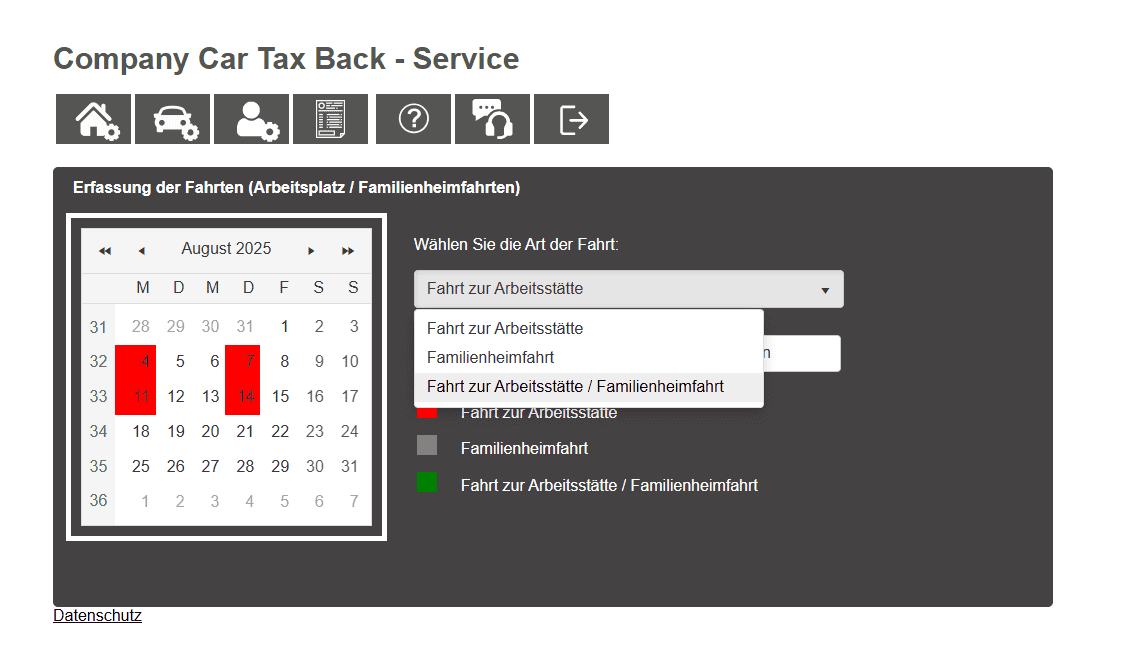 Verwaltung von Familienheimfahrten und Fahrten zur Arbeitsstätte