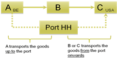 In the example case specified above, B had to declare an intra-Community acquisition and an export without the simplification rule in Germany. Under the prerequisites of the extended conflict of law rule, the stopover at the port and the different arrangement of the transport will be ignored. As a consequence, the intermediary entrepreneur does not have to declare any taxable transaction in Germany. However, this is subject to the following requirements: