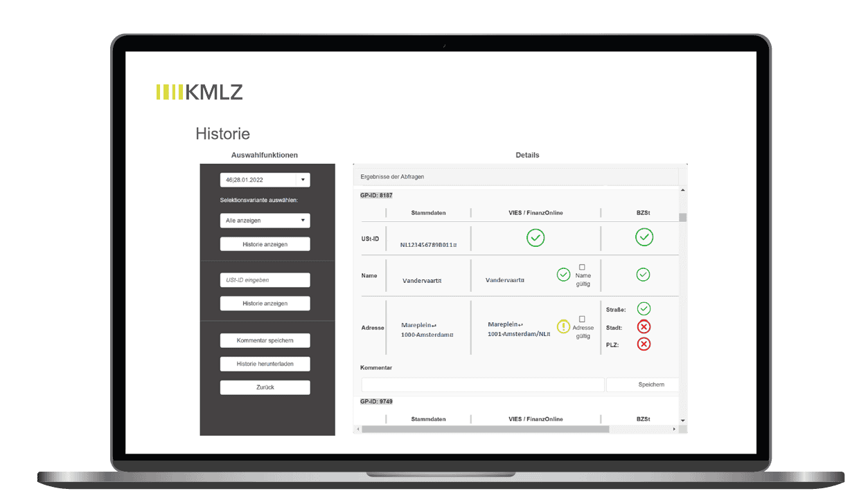 With the VAT ID Verifier, KMLZ offers a convenient solution for verifying VAT IDs via various databases (VIES, Federal Central Tax Office, FinanzOnline Austria).